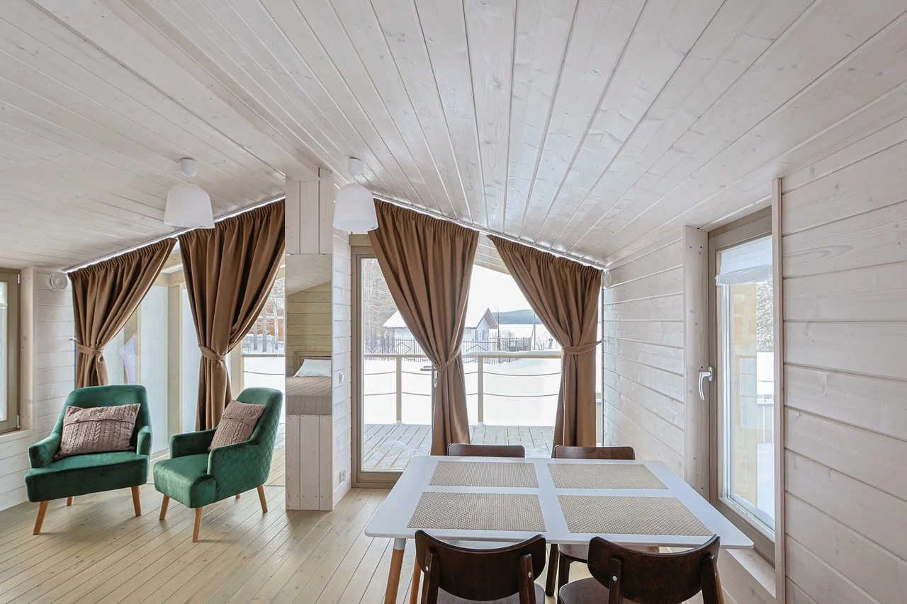 Уютные домики на берегу озера с живописными видами и уникальной атмосферой — идеальное место для отдыха на природе. Гостей ждут комфортное проживание в окружении уральской природы и удобное расположение: термальный комплекс «Фабрика отдыха» находится всего в 15 минутах, что делает это место отличной базой для совмещения спокойного уединения с возможностью посетить популярные развлечения.